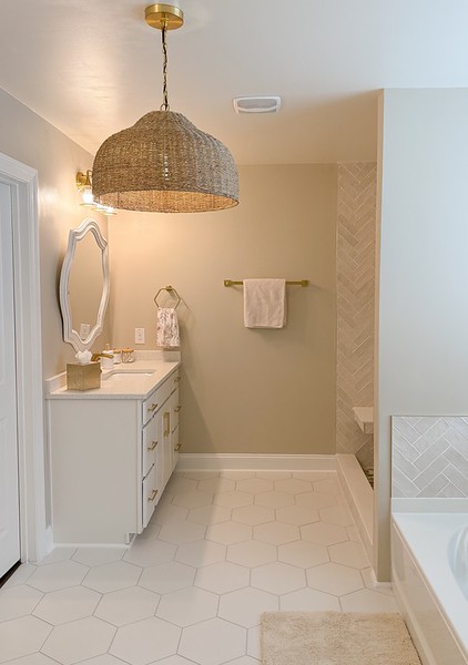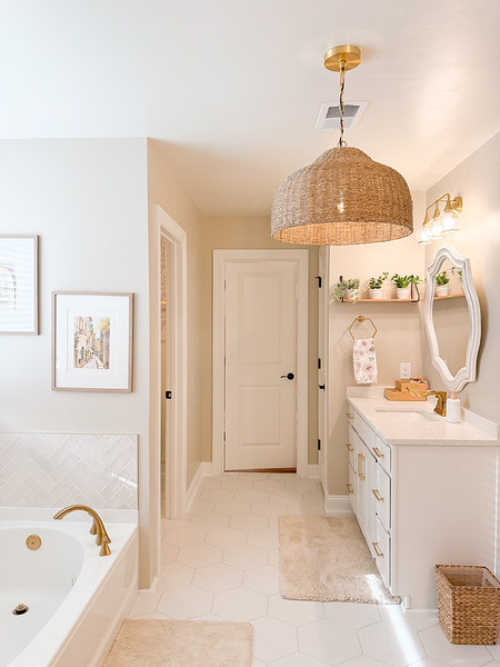 We just wrapped up this classic primary bathroom remodel. We didn’t move plumbing or electrical, so we were in and out within 3 weeks. The trick is, having all selections picked out and ordered BEFORE we start! This is what our process looked like. I’ve linked to ALL products HERE.