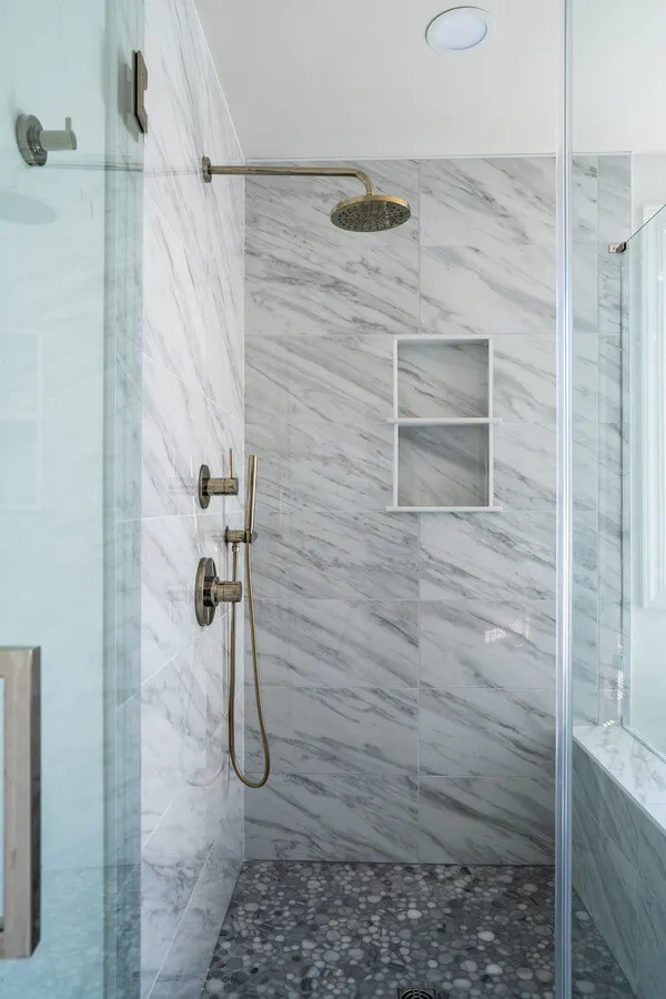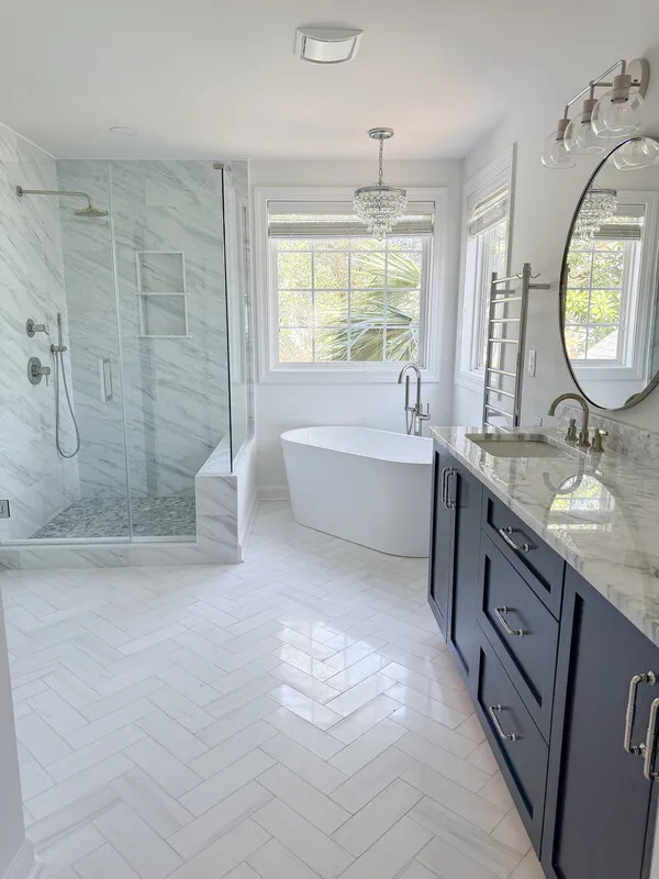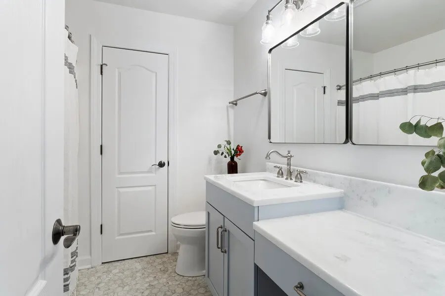 Every bathroom in this early 2000s home got a modern refresh—clean lines, calming tones, and upgraded finishes brought new life to each space while honoring the home’s original layout.