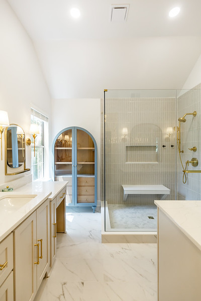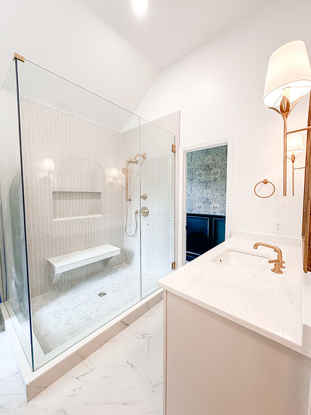 I just wrapped up a Primary Bathroom dreams are made of! I have to say, I am PROUD of this one! I knew this one would be fun the second I sat down for my initial meeting with this client. As she talked about her ideas and goals for the space, I felt like she jumped into my brain and started sharing my thoughts. Wallpaper, tiny pops of color, clean lines… SOLD! This is definitely the perfect balance of Boho Nordic Blend… my specialty!
